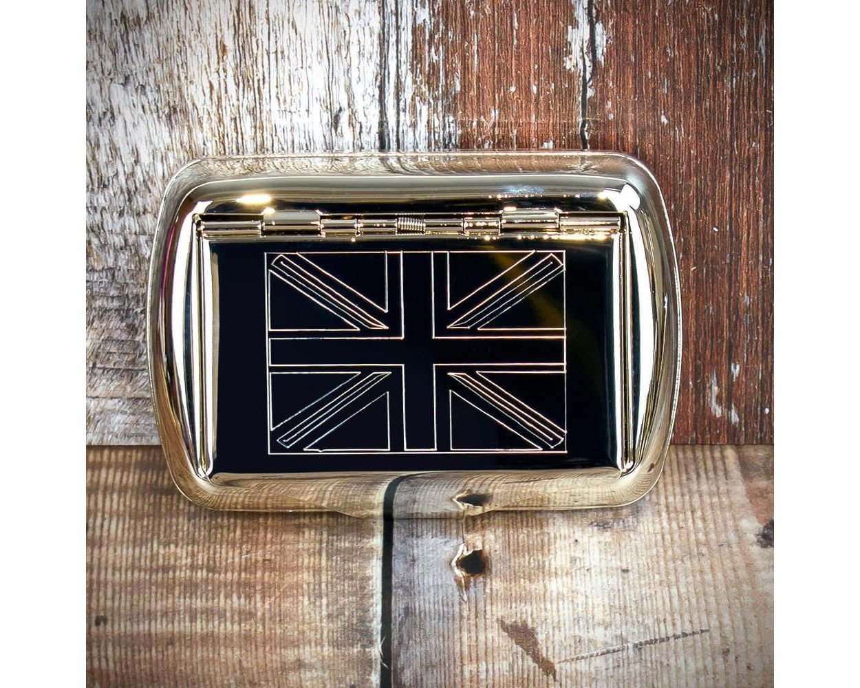 Union Jack Design A metal tobacco tin with a design and paper holder (for standard rizlas). Will hold 25gms of hand rolling tobacco.
